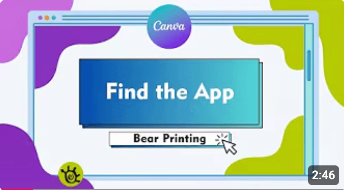 Login to Canva and search for the Bear Printing App in the "Apps" tab.